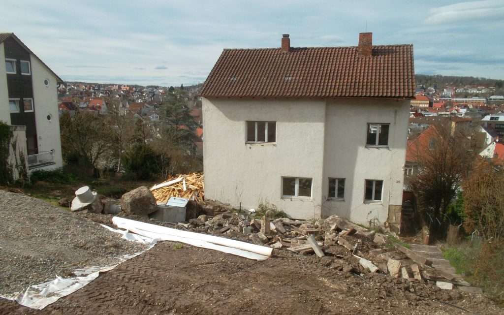 14. März 2026in der happoldstrasse in stuttgart-feuerbach starten die abbrucharbeiten. das alte einfamilienhaus weicht. für den neubau von zehn eigentumswohnungen. innerstädtische nachverdichtung at work.